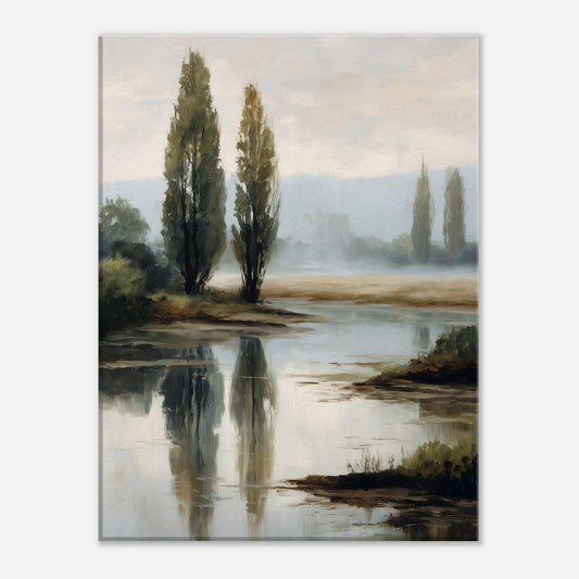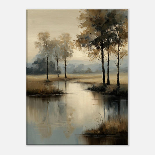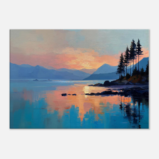 Serene Lake Landscape Oil Painting Canvas Print