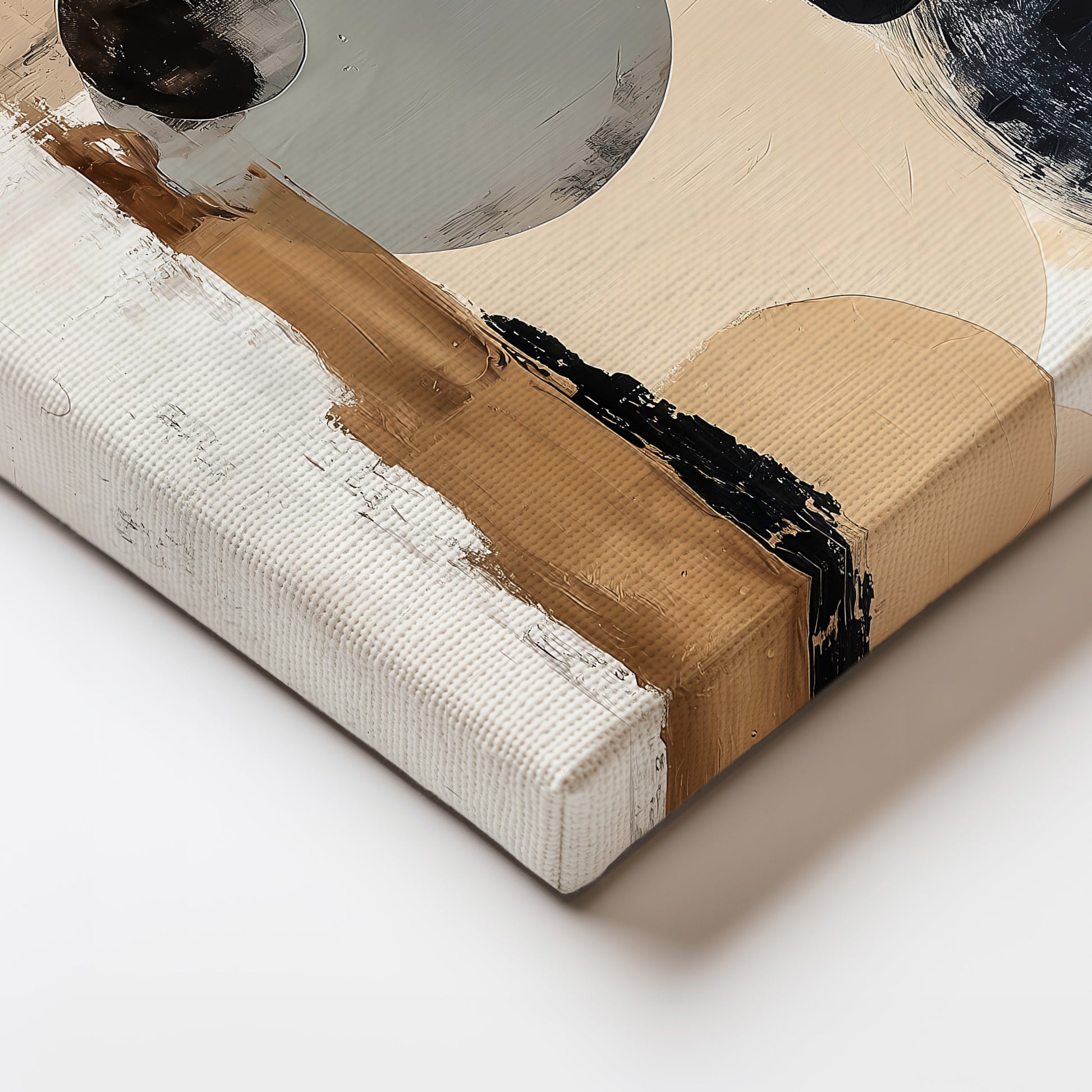 This modern abstract artwork combines soft circular forms with neutral colors for a balanced and harmonious look. Perfect for modern living spaces or creative work environments, it brings subtle movement and elegance to the wall.