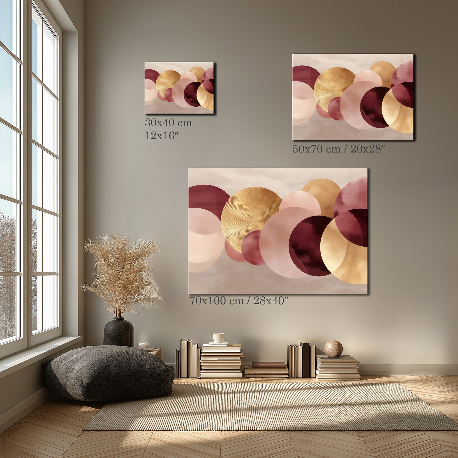 This contemporary circle wall art features overlapping shapes and muted colors for a clean, modern aesthetic. Ideal for minimalist or modern interiors, it adds visual interest without overwhelming the space.