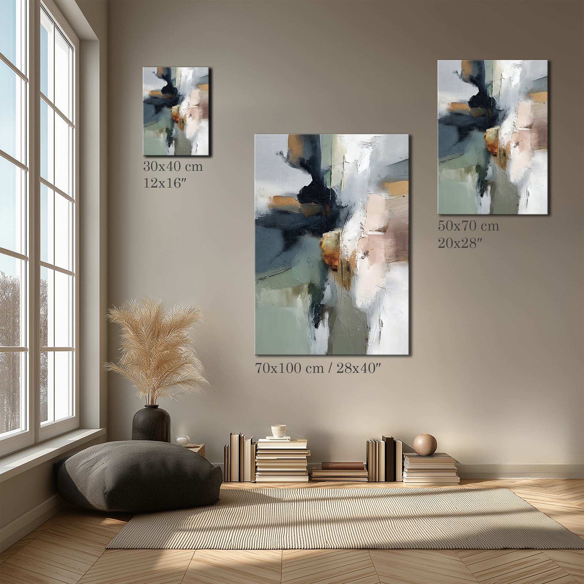 This neutral abstract oil painting blends soft textures and earthy colors into a timeless composition. Ideal for modern or Scandinavian-style interiors, it adds warmth and depth to any wall.