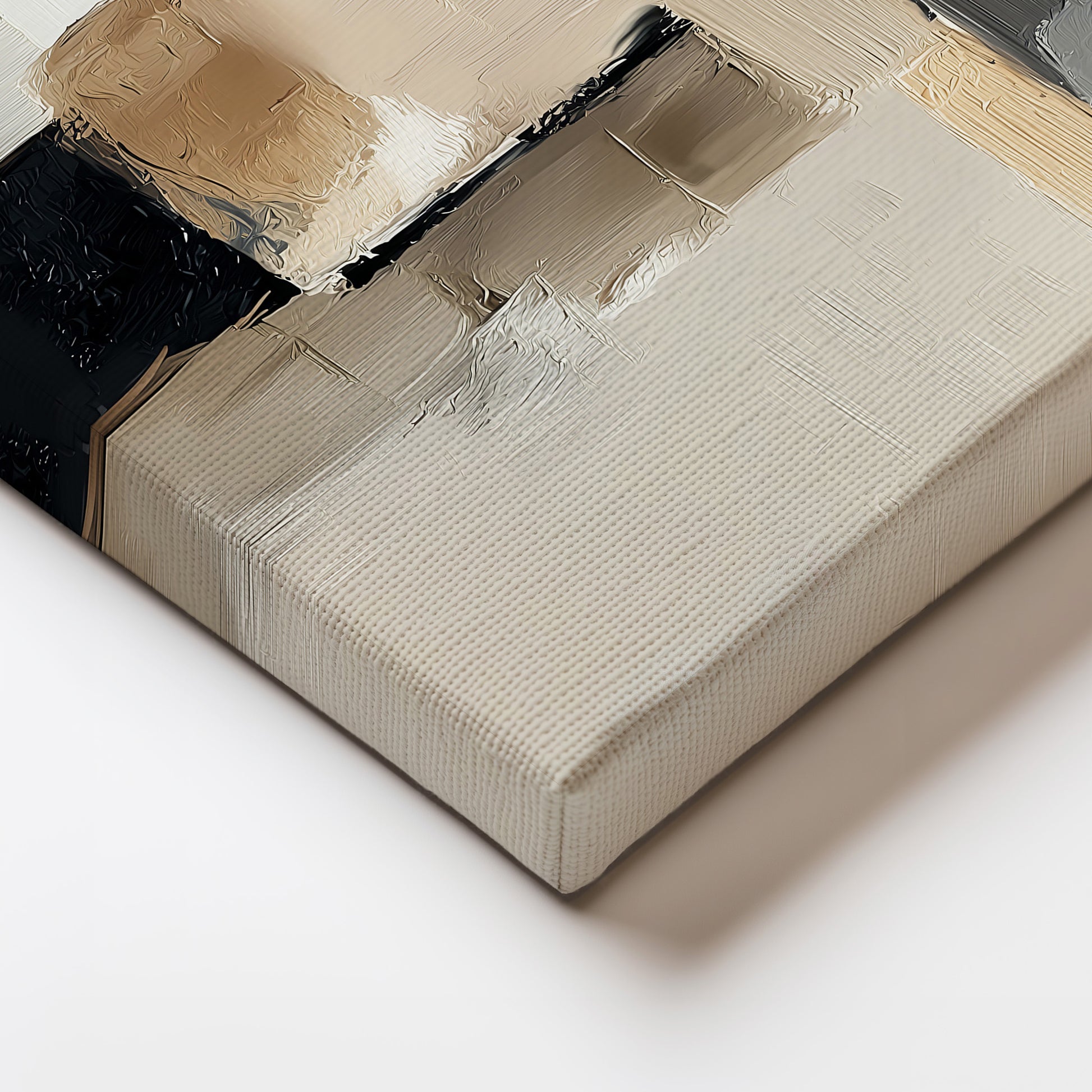 This geometric abstract artwork uses layered blocks and neutral tones to create a clean, architectural look. Ideal for modern living rooms or offices, it adds order and subtle depth to the wall.