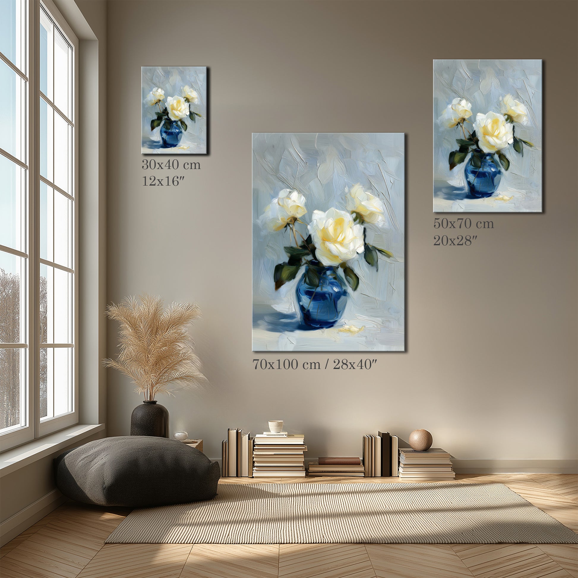 This white rose floral vase painting highlights elegant flowers arranged in a classic still life. Perfect for bedrooms or dining areas, it adds softness, refinement, and timeless floral beauty.