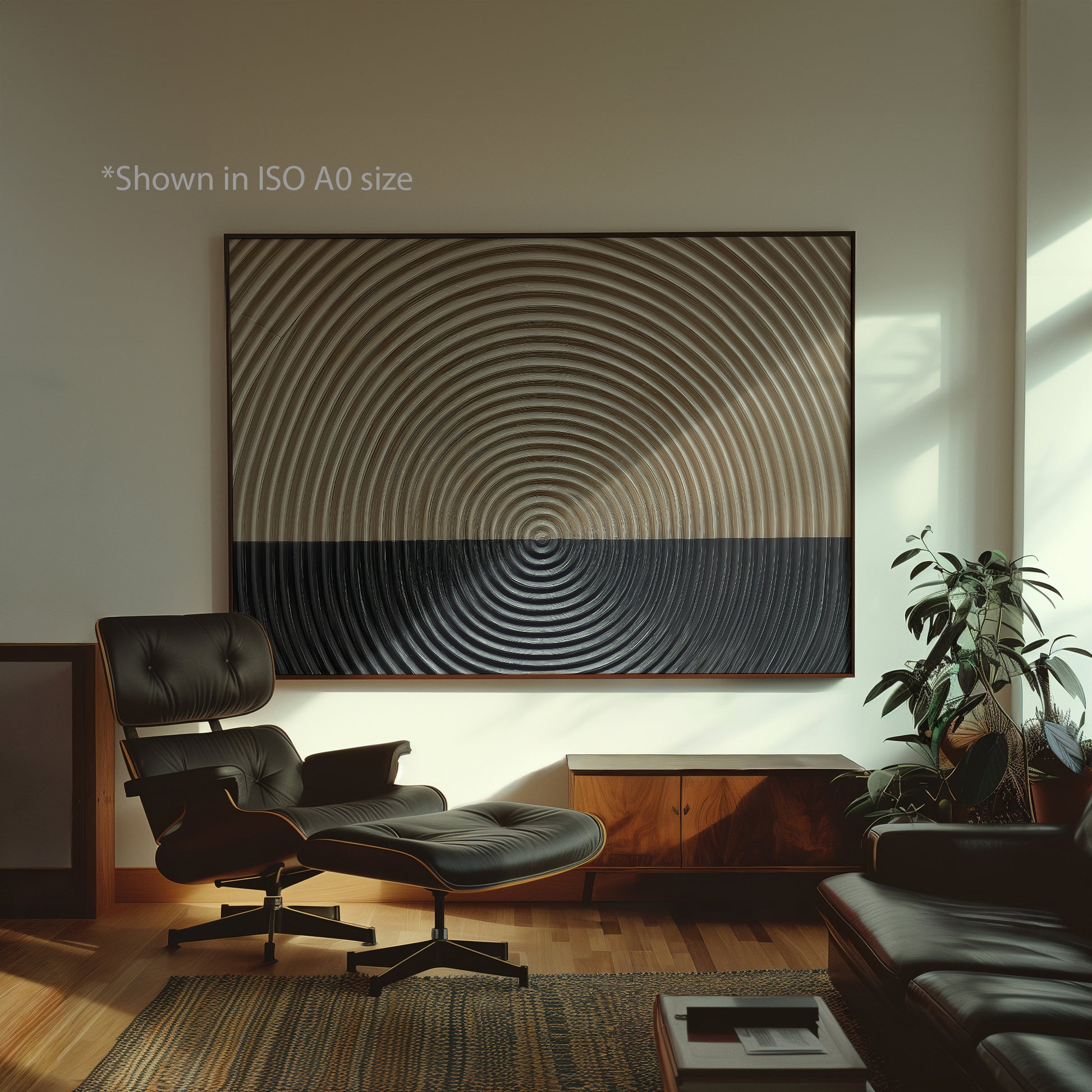 This abstract circle wall art features layered brown and black tones that create depth and visual rhythm in a modern composition. Ideal for living rooms, offices, or minimalist interiors, it adds a calm, structured accent to contemporary spaces.