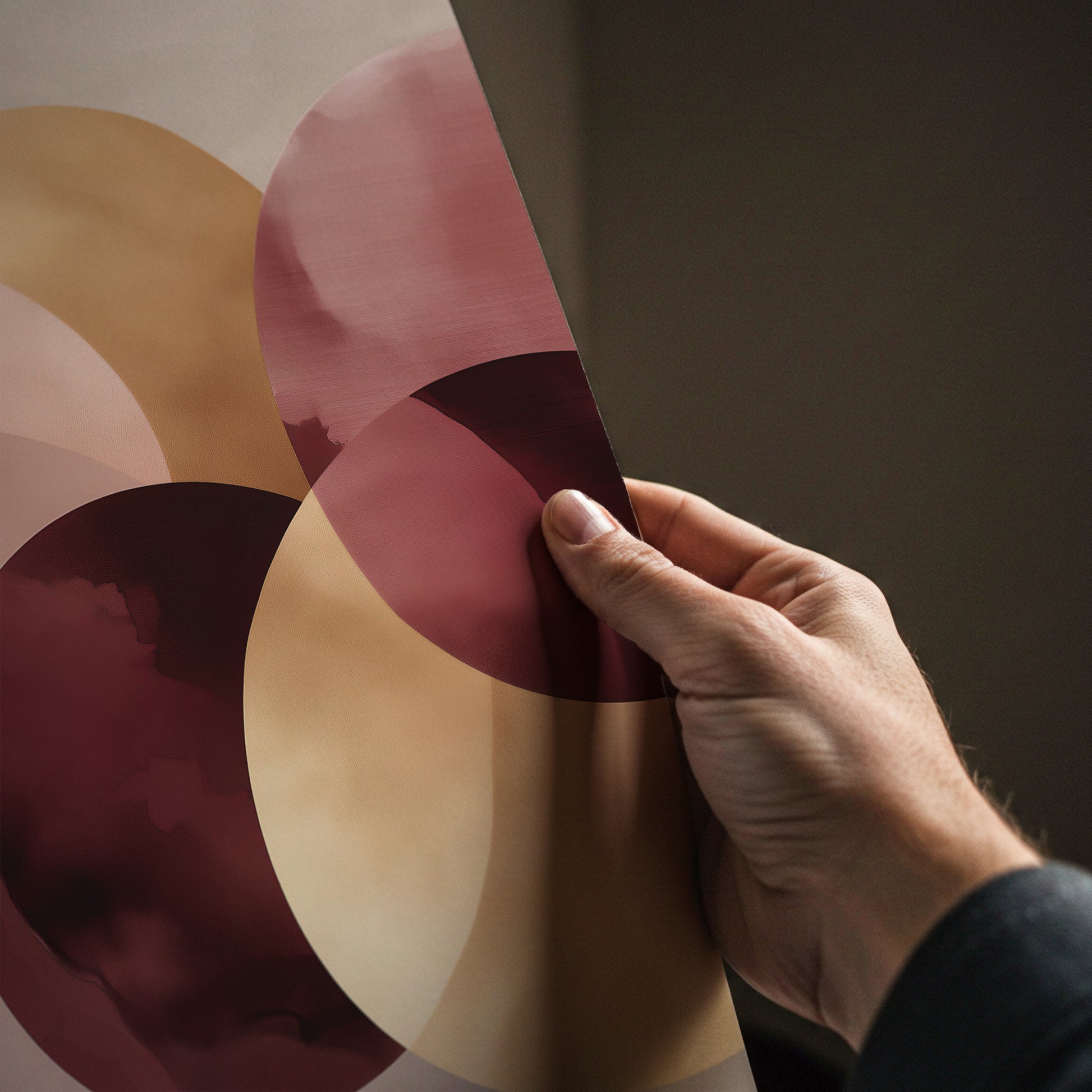 This contemporary circle wall art features overlapping shapes and muted colors for a clean, modern aesthetic. Ideal for minimalist or modern interiors, it adds visual interest without overwhelming the space.