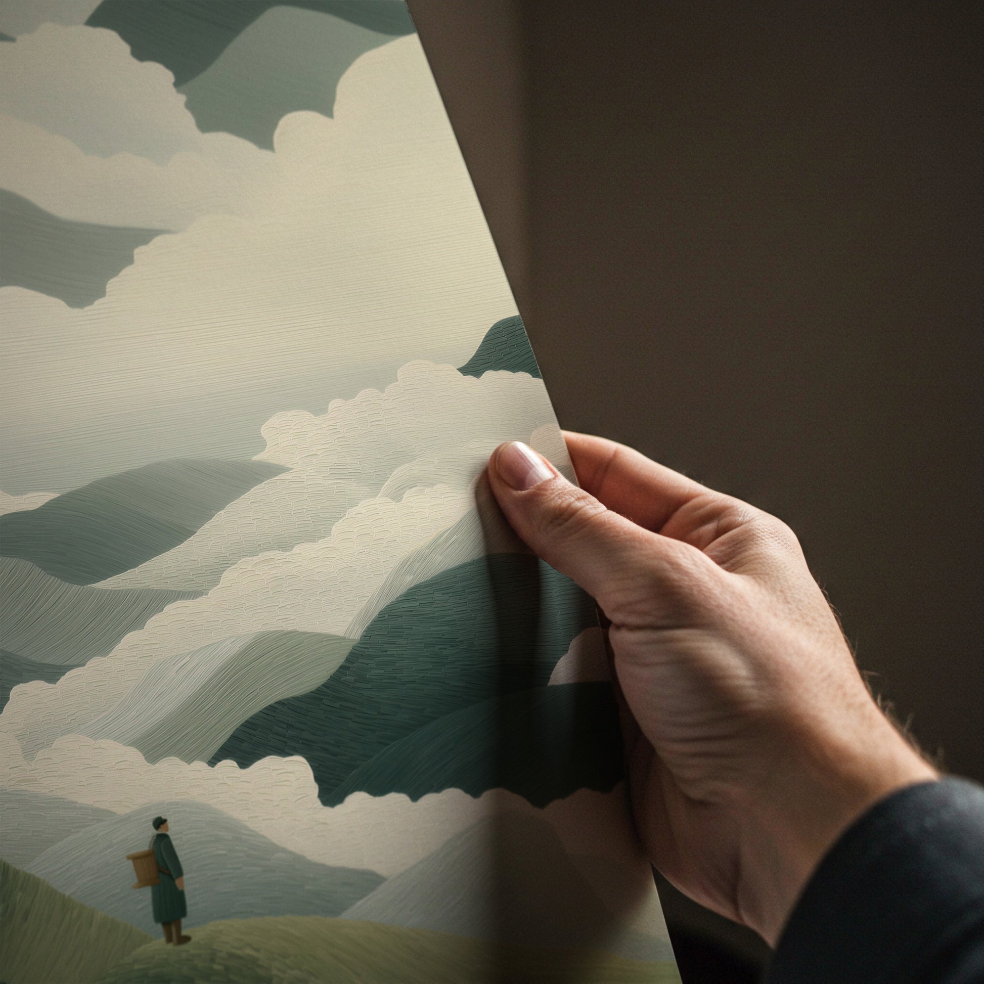 This minimal mountain landscape is inspired by Japanese-style forms and layered hills, creating depth with simplicity. Ideal for modern interiors, it adds a serene and contemplative atmosphere to the space.