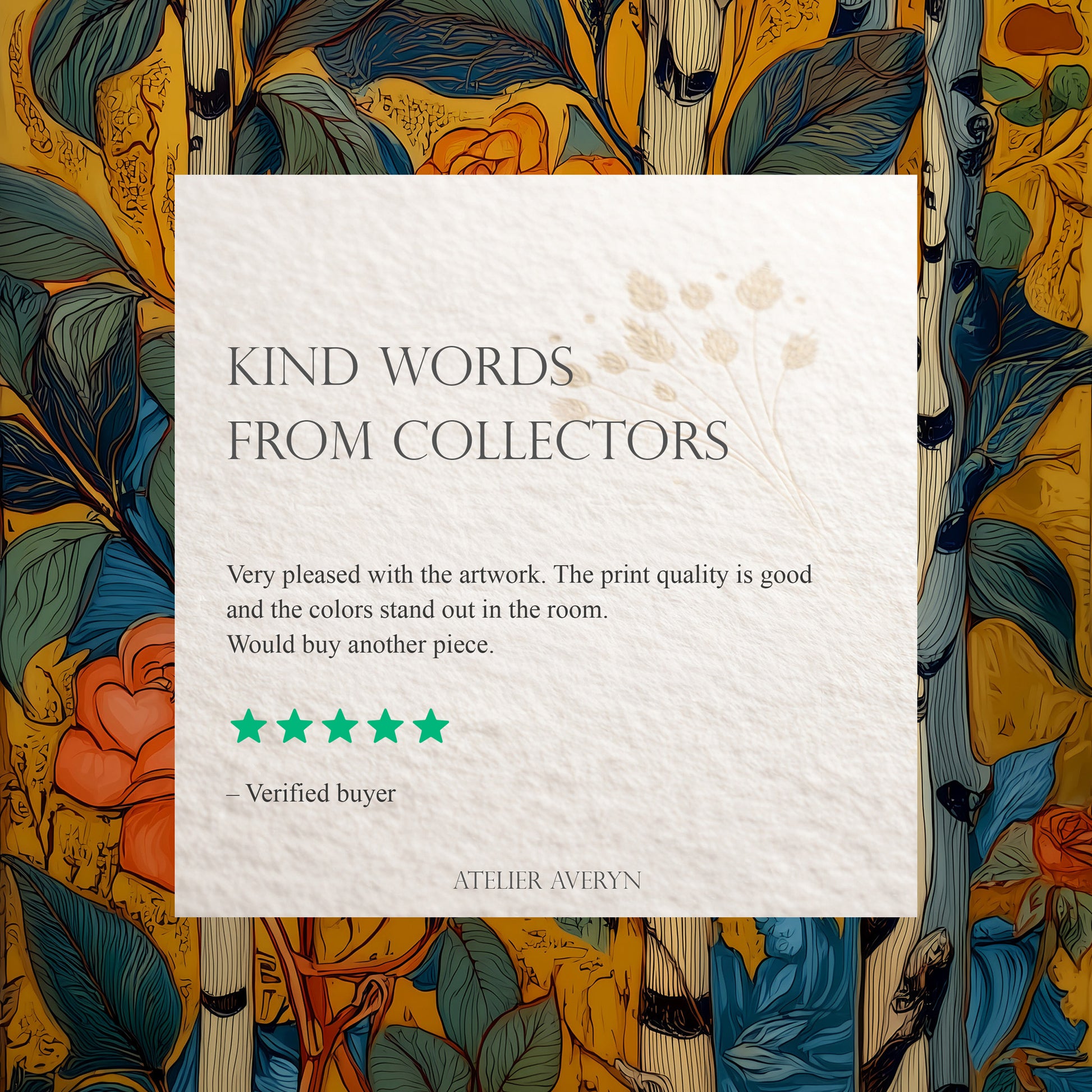 Museum-quality art prints on 200 gsm matte paper – durable, long-lasting, and FSC-certified for sustainable production. The smooth, non-reflective surface ensures crisp detail with an elegant gallery feel. Many designs feature a clean white border for timeless framing options. Made in Germany.